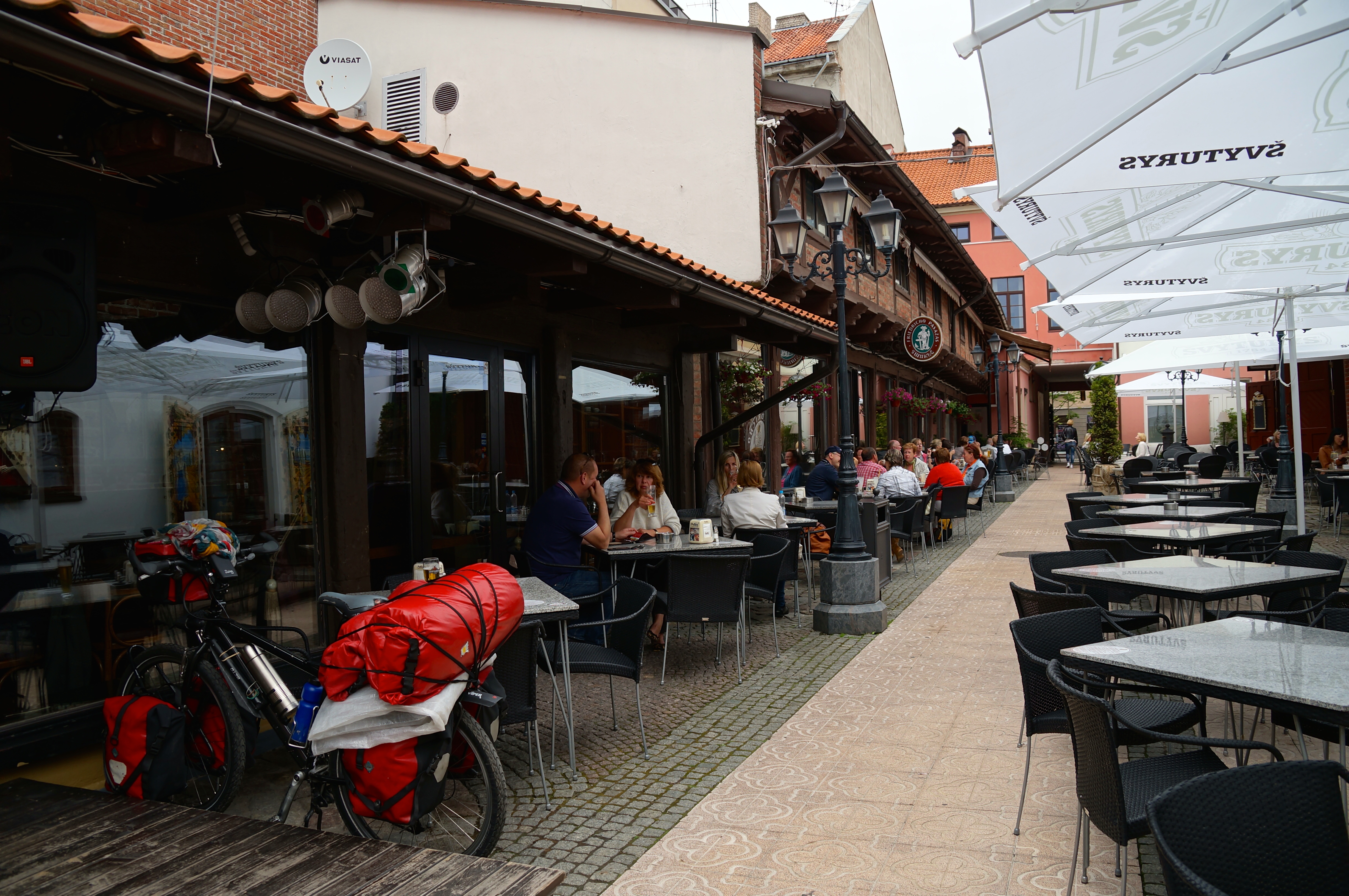 Irgendwie habe ich den Zeltplatz von vor zwei Jahren doch nicht so richtig gefunden. Bin immer weiter geradelt und plötzlich in Palanga gelandet. Eigentlich waren hier zwei Zeltplätze in der Karte verzeichnet, aber ich fand keinen davon. Es war schon ziemlich spät, es regnete und ein heftiges Gewitter fing an. Der Europaradweg R1 (hier R10) machte einen Kurve nach rechts. Ich fuhr gerade aus, um mich unter zu stellen. So landete ich im *** Hotel Meduza (www.pkmeduza.lt). Ich checkte ein, bekam das Gepäck aufs Zimmer getragen und noch ein großes litauisches Bier. Aus dem sicheren Trockenen sah ich draußen dem Platzregen zu.
